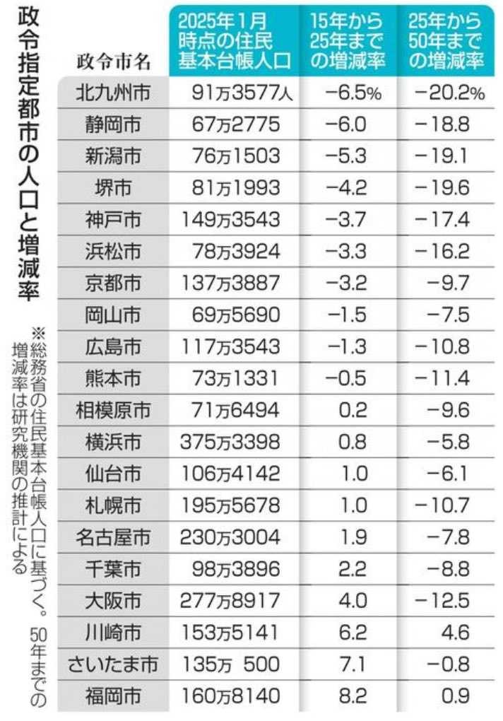 15-25年までの人口増加率は政令都市で2番目