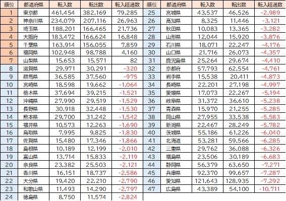 俺「唯一都道府県で100年間人口が増えた県 唯一都道府県で東京に対し転入超過」