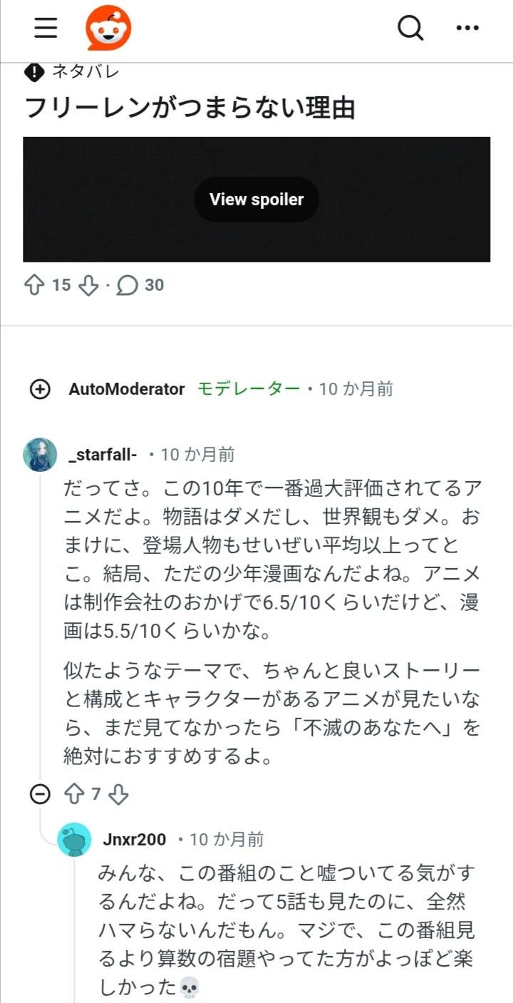 外人「葬送のフリーレン、過大評価アニメ。机で算数の宿題してた方が楽しい」