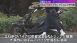 車線変更したトラックに接触されバイクが電柱に衝突 運転手が死亡 トラックは現場から立ち去る