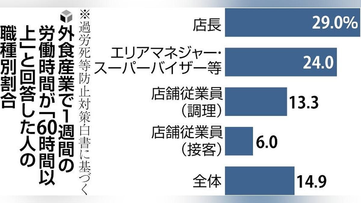 外食産業の店長、3割が「週60時間以上」の過労死ライン…過労死白書