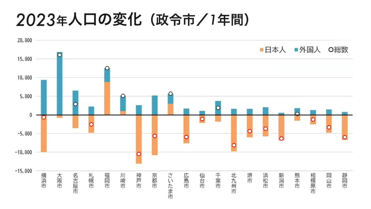 福岡の日本人の増え方と北九州の日本人の減り方は九州全体のヤバさが際立ってる