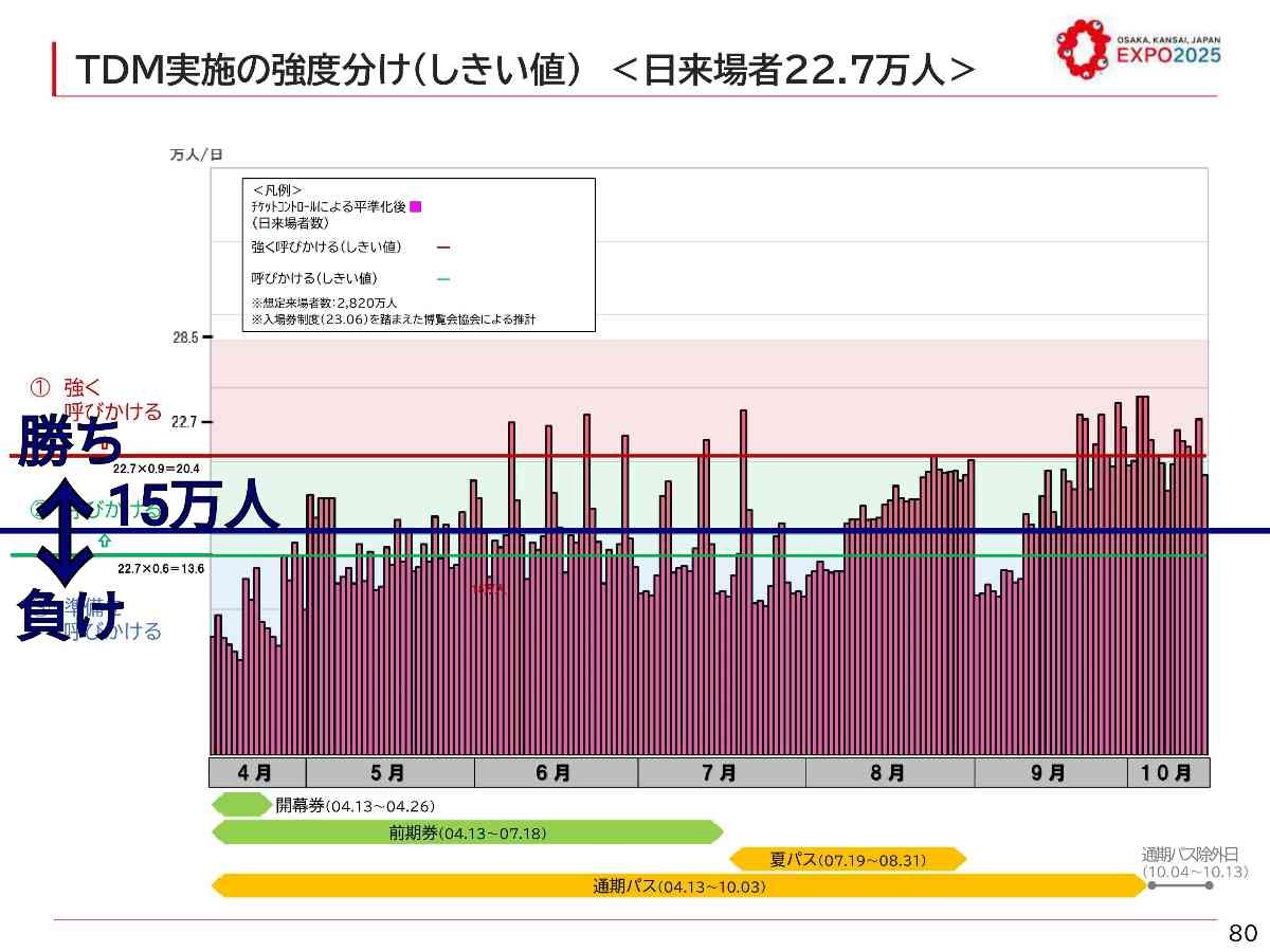 1日15万人(関係者含めず)以上来たら勝利、それ以下なら負け