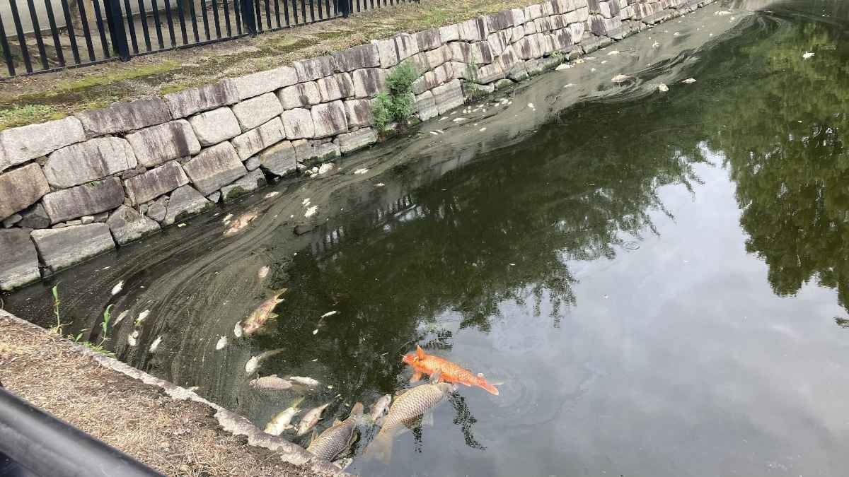 大阪城のお堀で魚が大量死 「100匹以上か…東外堀の魚はほぼ全滅」