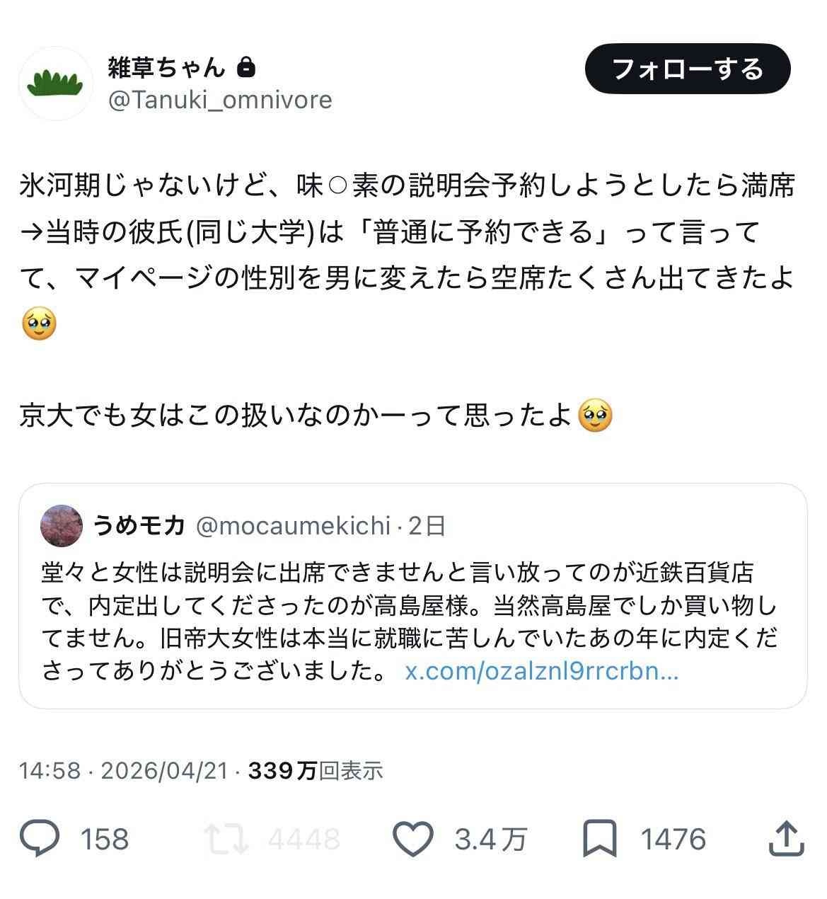 学歴フィルターはちょくちょくバレて炎上してるけど男女フィルターはあんまなくね