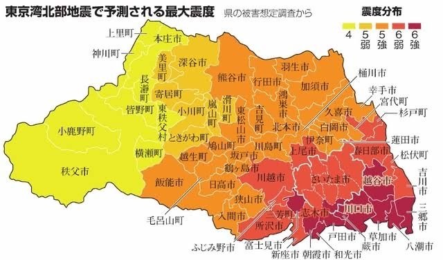 埼玉南部だと首都直下型地震の震源地になる可能性ある
