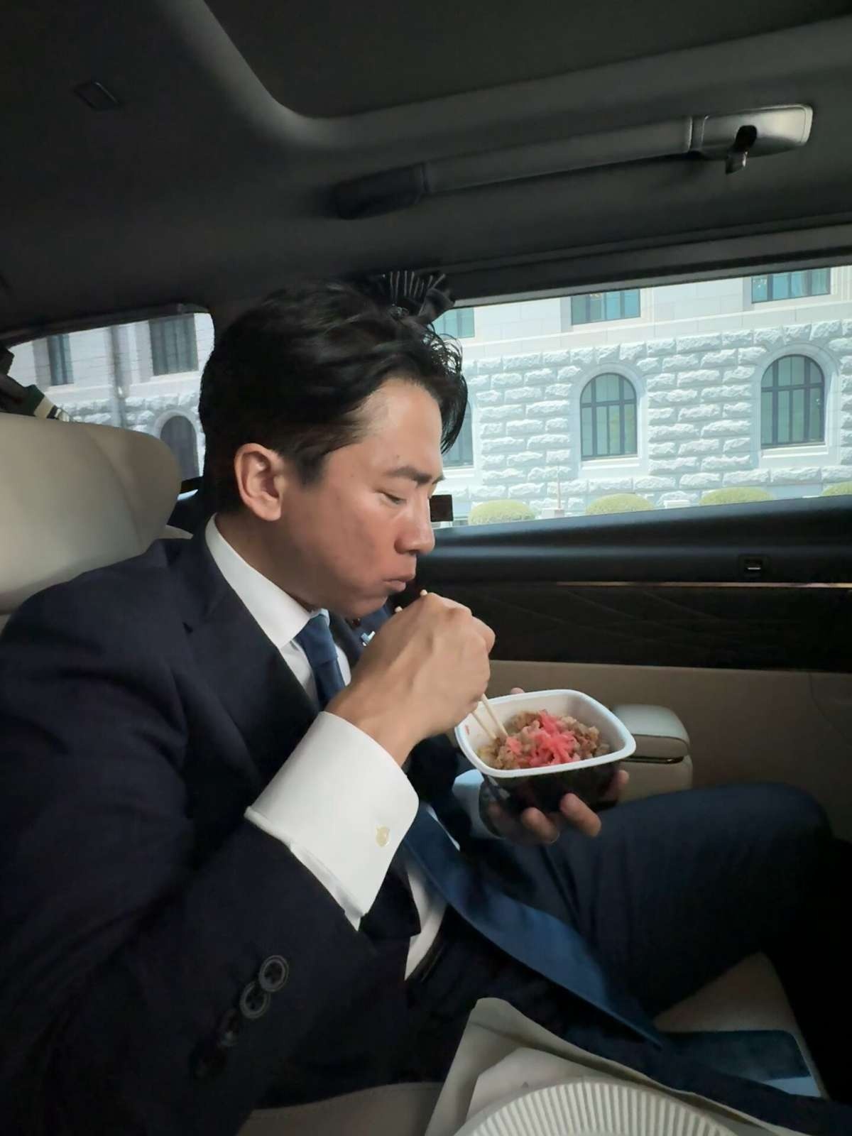 小泉進次郎、牛丼を食べて庶民アピールするも場所が3000万円の高級車で炎上。🔥