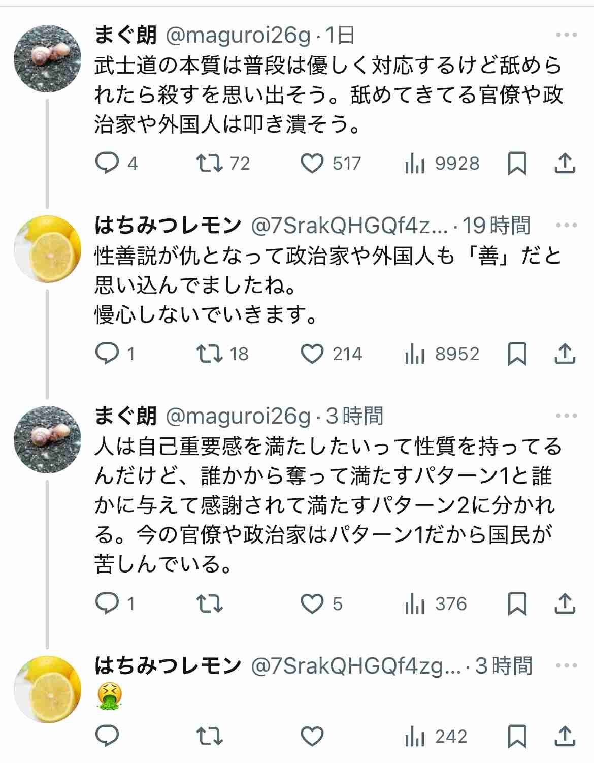 まあ、そういう意見もあるんだろうな。国を思う気持ちは理解できるが、表現方法には気をつけたいところだ。 見出しの『国民』がトリガーとなり、アクティベート。 BE[856698234]はこれまでに34スレッドで1267レスのscriptを記録。