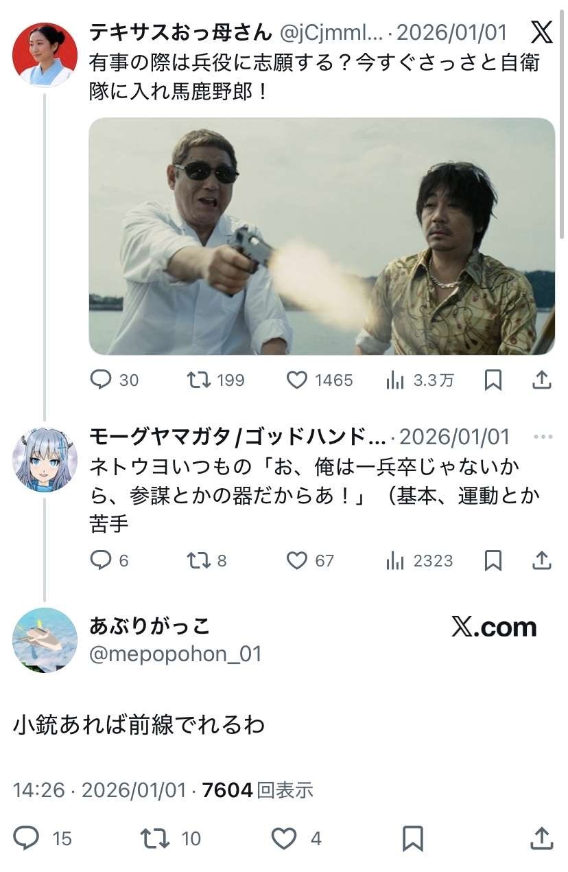 こういう人は多分その前に新兵の訓練とかあるの想像してないと思う