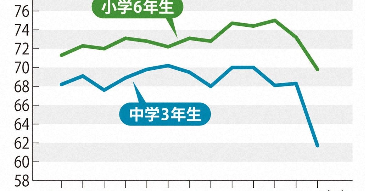 中3は21年度の75・8%から25年度は61・7%まで減少した。