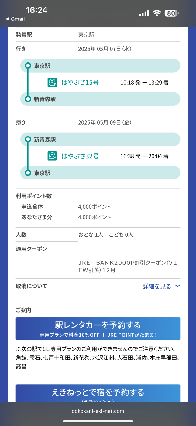 4000ポイントで新青森まで往復ってこれぶっ壊れてない?