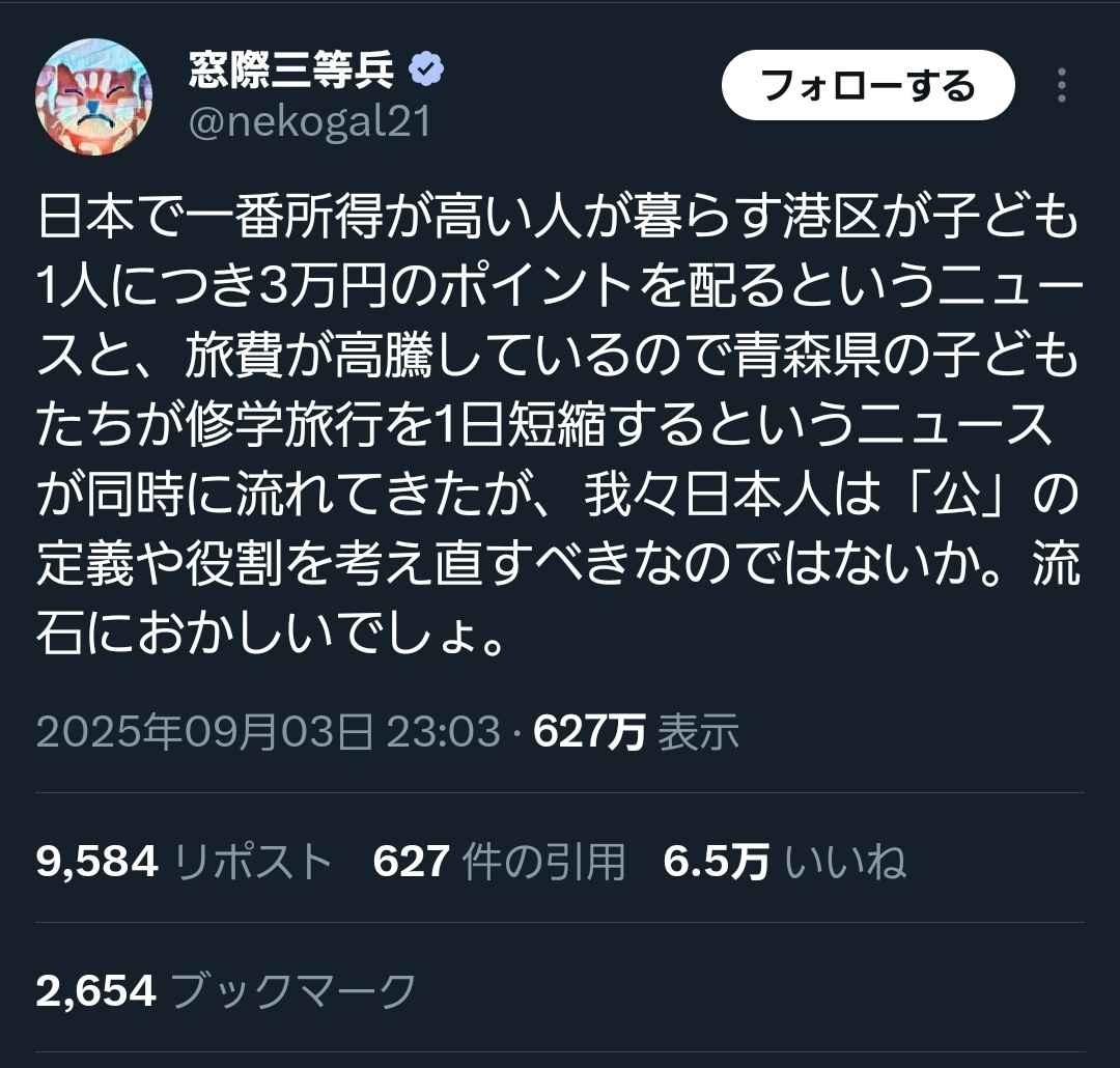 上級から底辺への所得再分配には拒否反応示すのが普通のジャップ