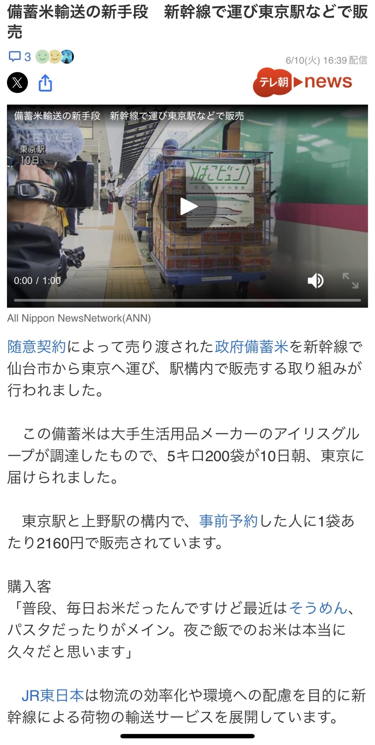 備蓄米ですら新幹線の乗り方知ってるのに…