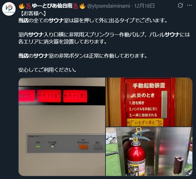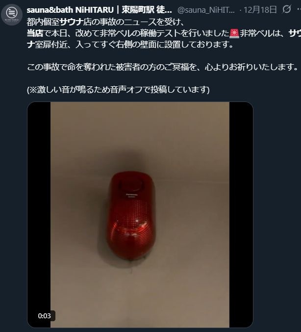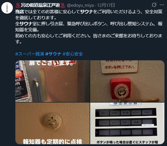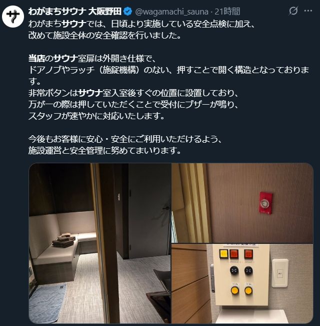 サウナだけじゃなくて全ての非常ボタンを検査したほうがいいぞ