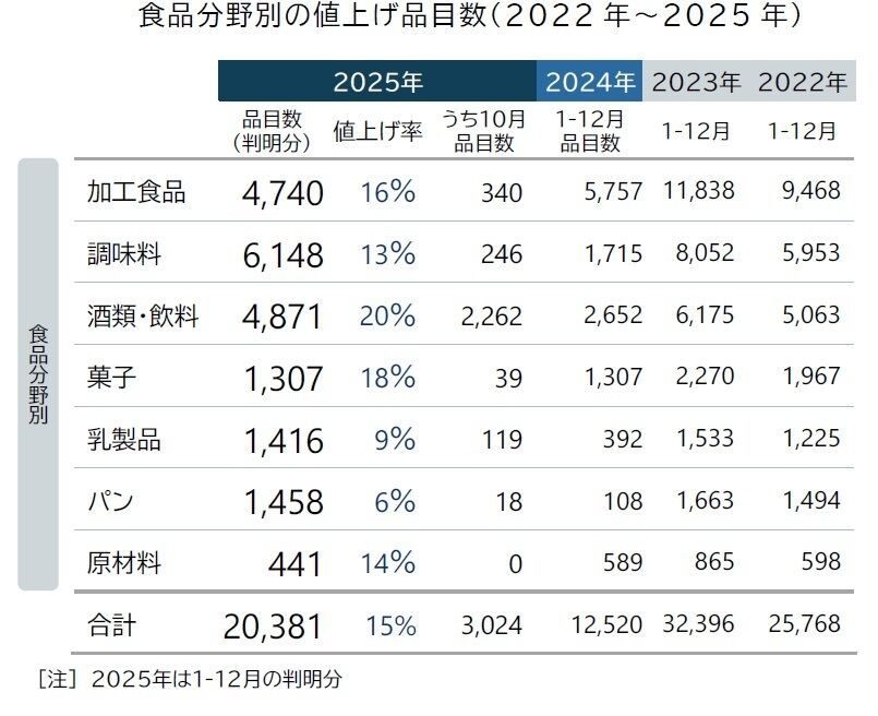 2025年10月の飲食料品値上げ – 年間でどのくらい?