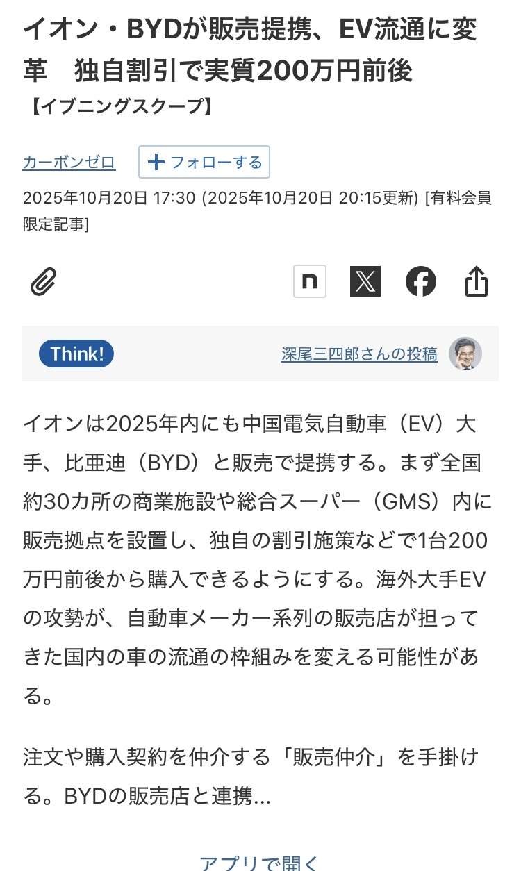 イオンに買い物に来る度にBYDのEVを見ることになる