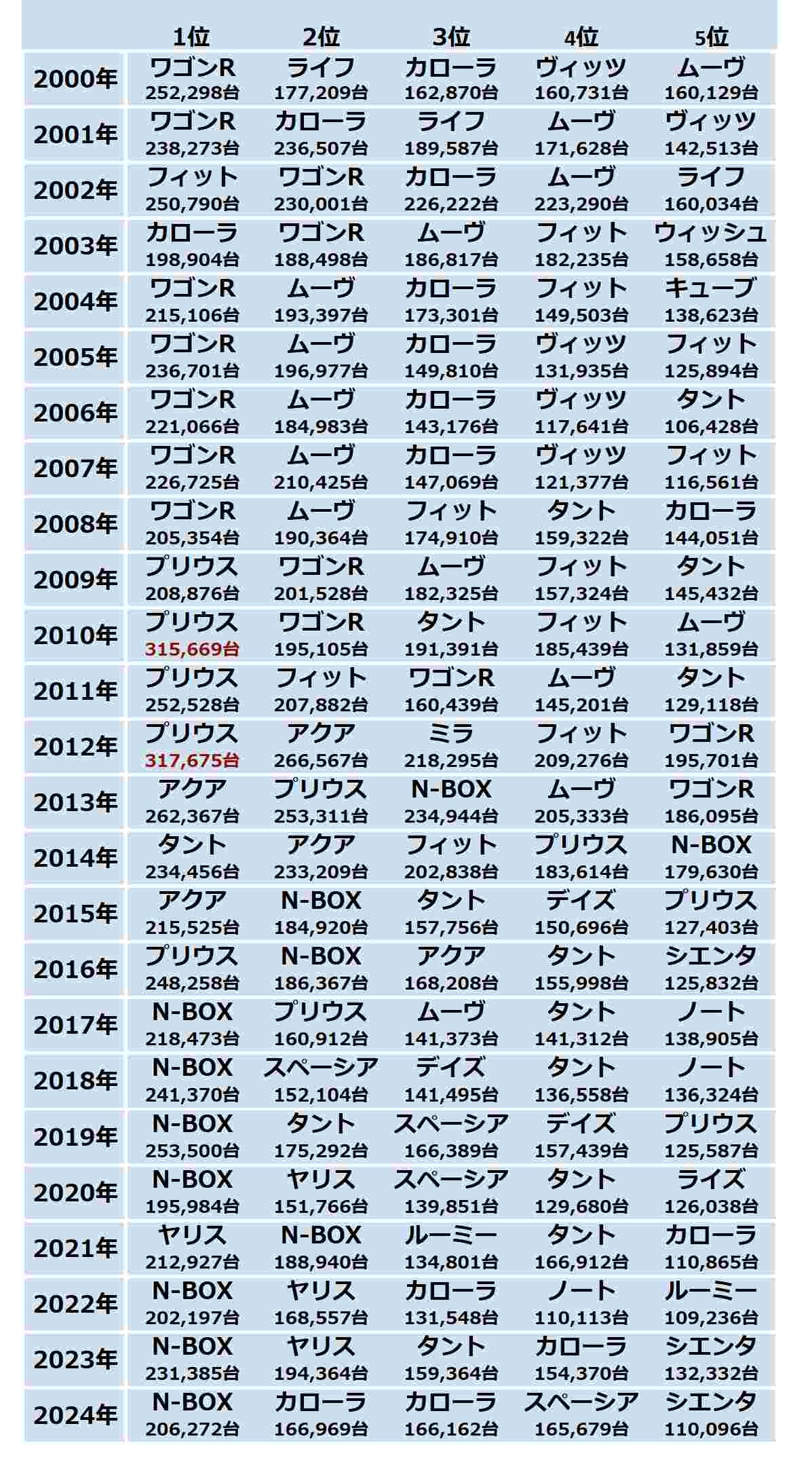 2007年前後はタントがぶっちぎりのトップだった気がしたんだが違ったか