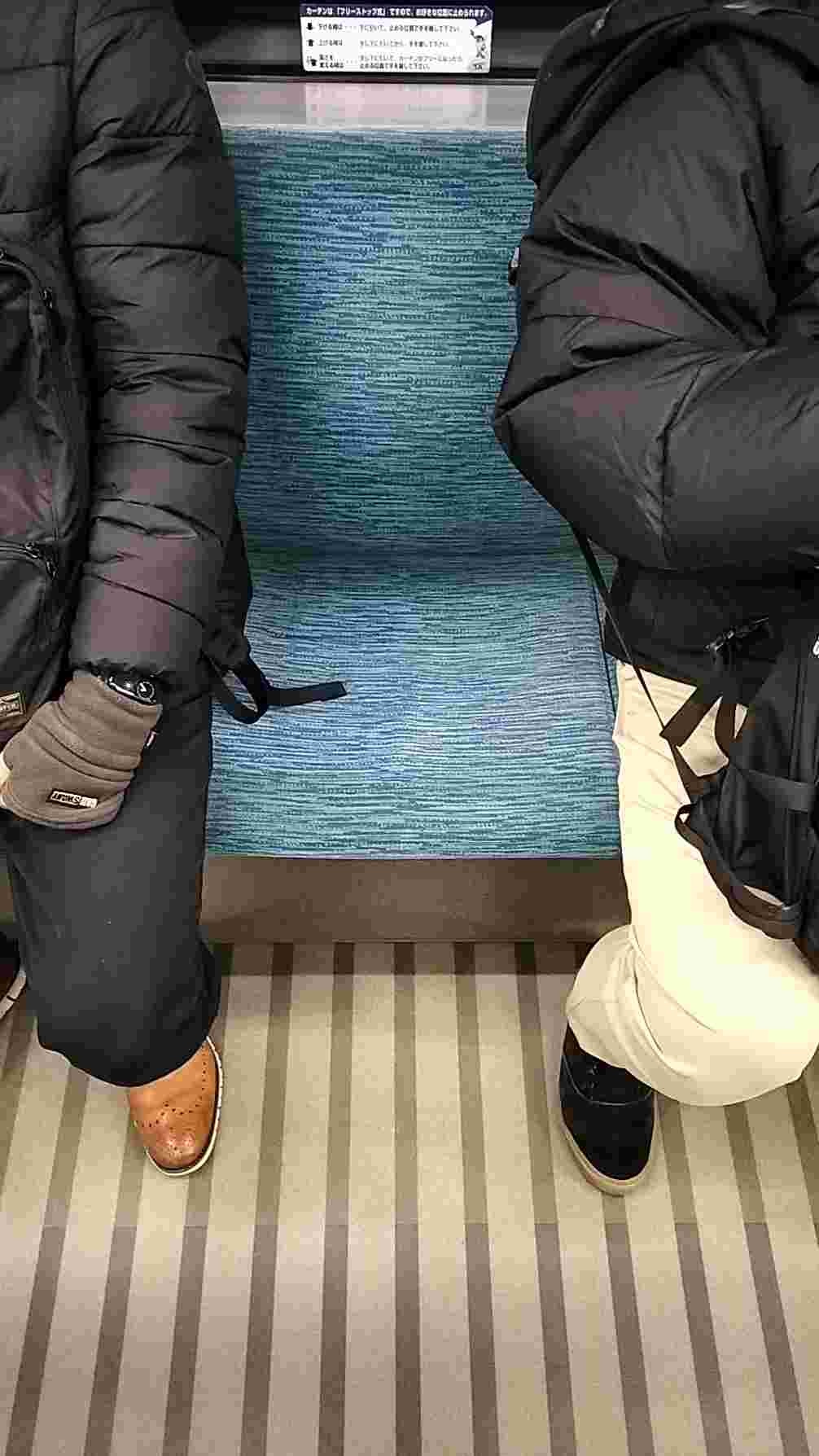 なんとか席を確保できたからといっても安泰ではなく、今度は隣の席の人と「ひじ相撲」が始まることもあります。