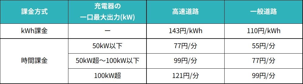 また、kWh課金を導入しない直営充電スポットについては、同日より「充電器の立地・最大出力・充電時間に応じた課金方式」(以下、「出力別時間課金」)に移行いたします。