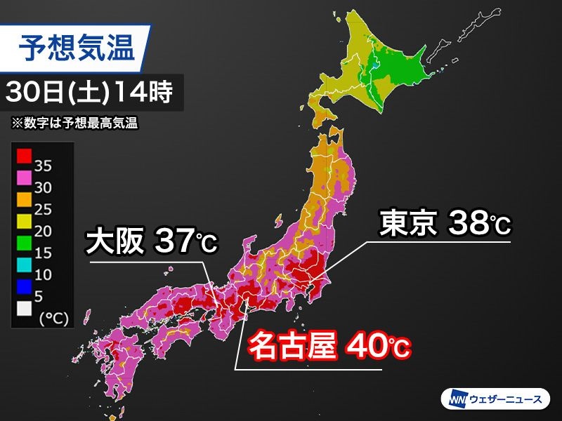 今日は関東以西で危険な猛暑 名古屋で40℃予想