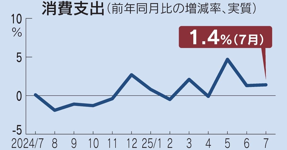 7月の実質消費支出1.4%増 3カ月連続プラス、車購入が押し上げ
