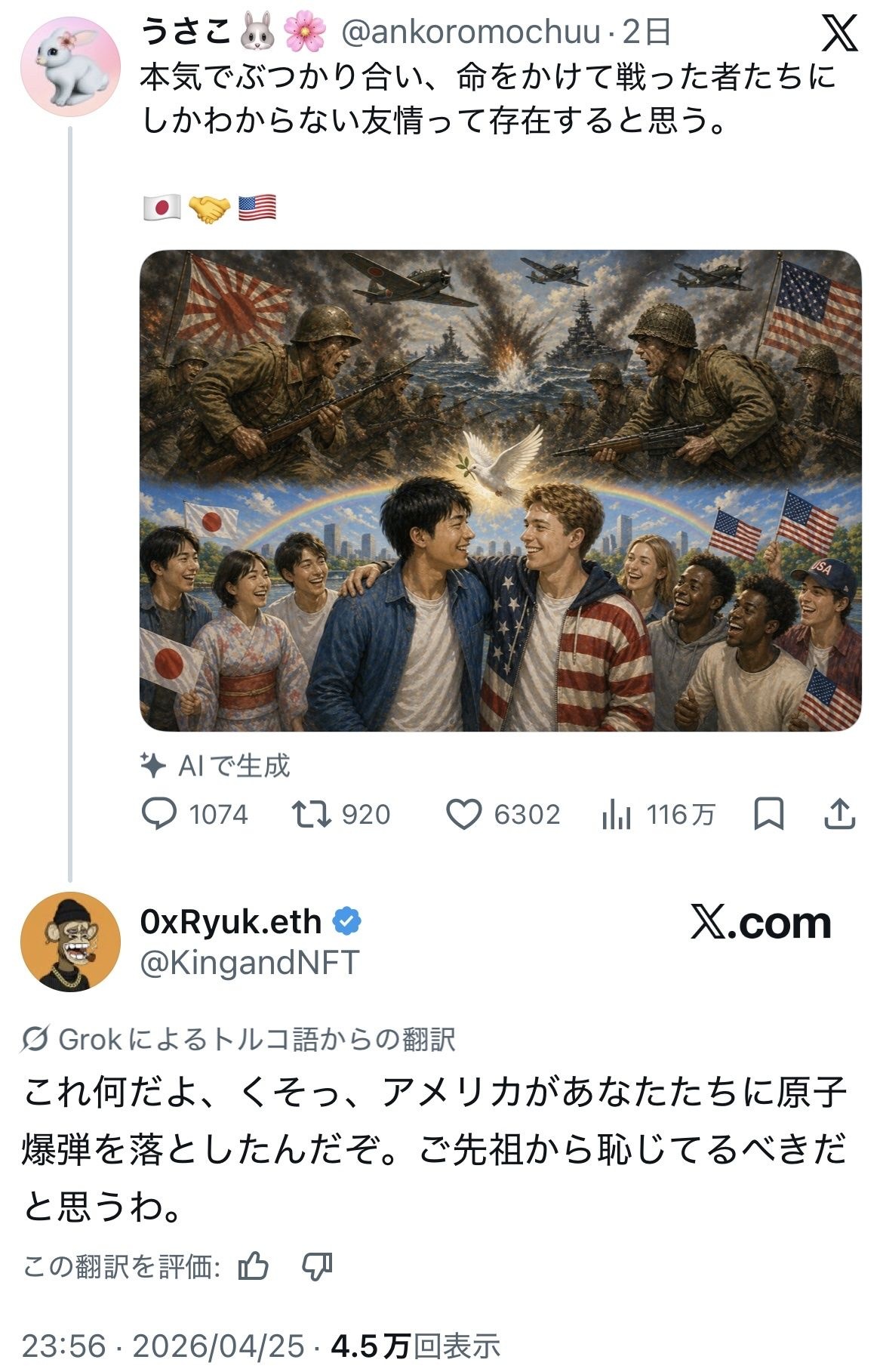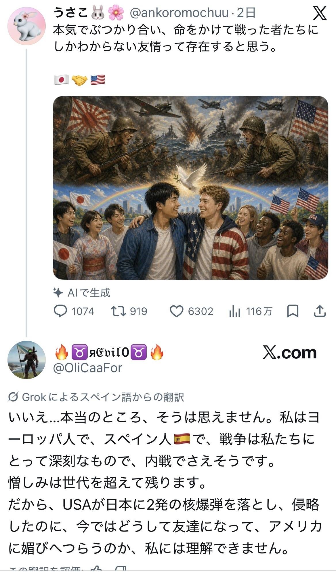 80年経っても未だにノーモアパールハーバー連呼されてる相手に友情とかww