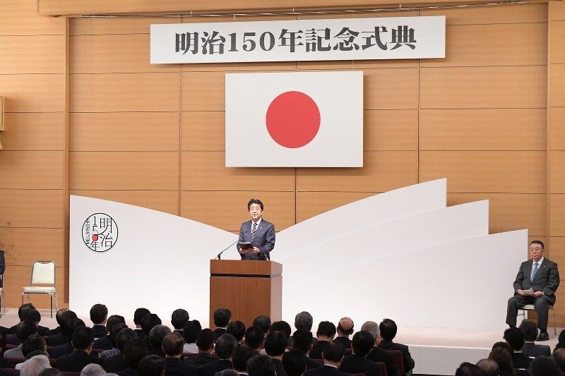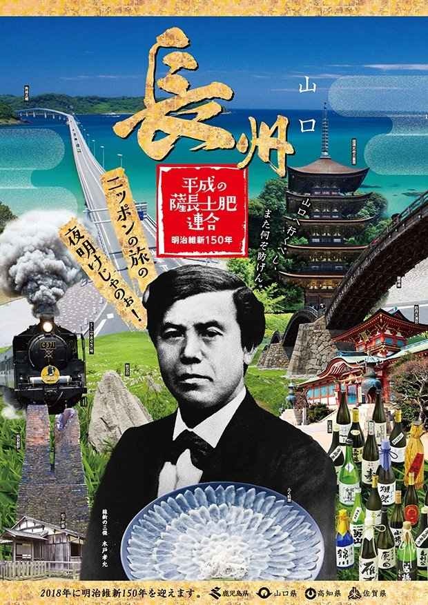 山口は「明治維新150周年」の祝賀行事で薩長土肥4県と合同でコミカルに行った