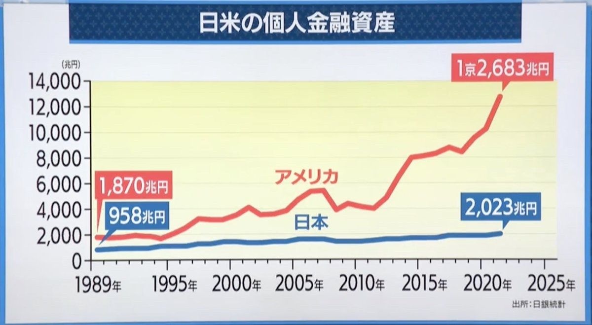 2025年6月末時点で、日本の個人金融資産は2239兆円