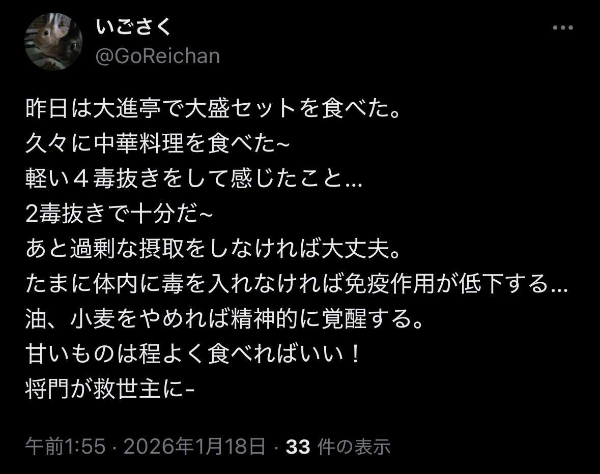 毒抜きとか極端なんだよな😞