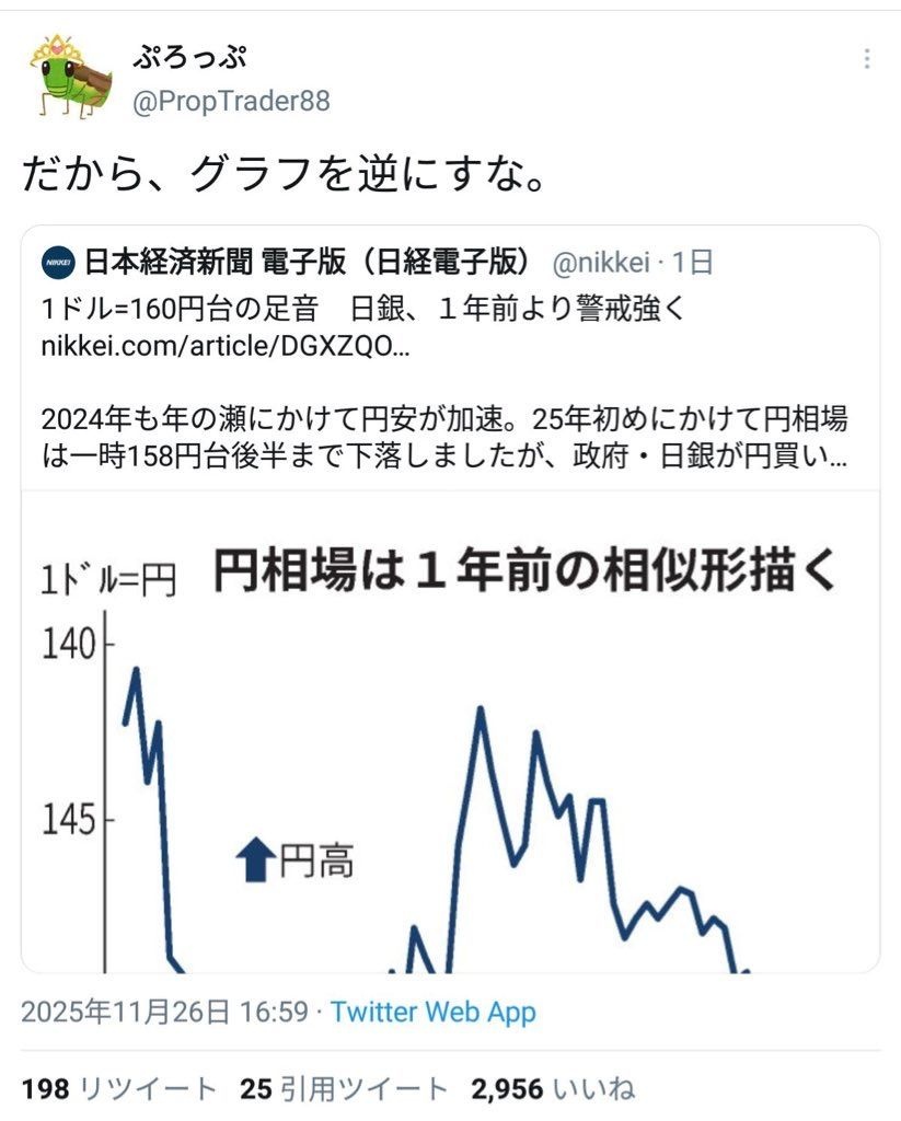グラフを逆にして円が暴落しているかのように印象操作をしてる模様