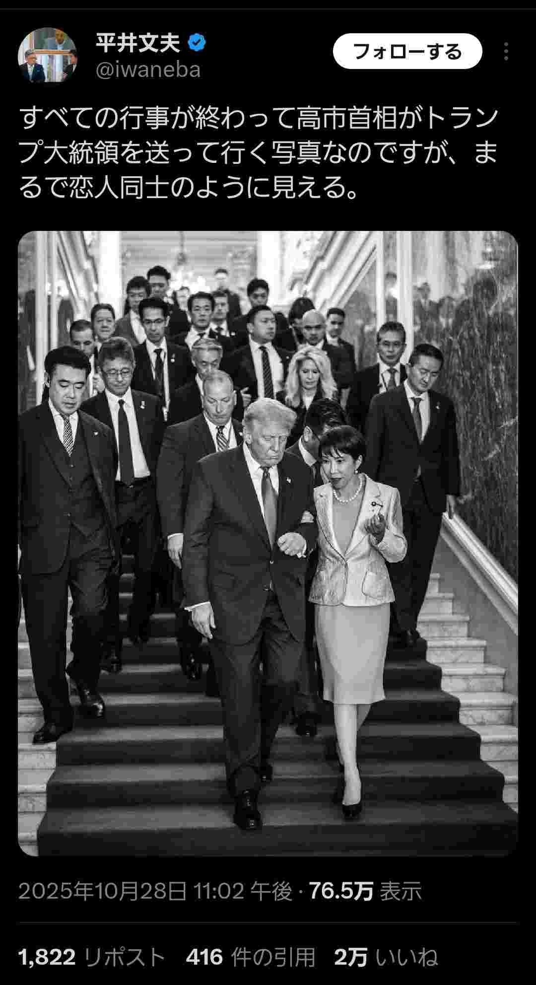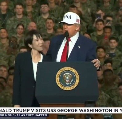 トランプの横でぴょんぴょん飛び跳ねてキャッキャしてんのが64才のBBAで日本の総理大臣って世界のニュース映像として強烈だよなw