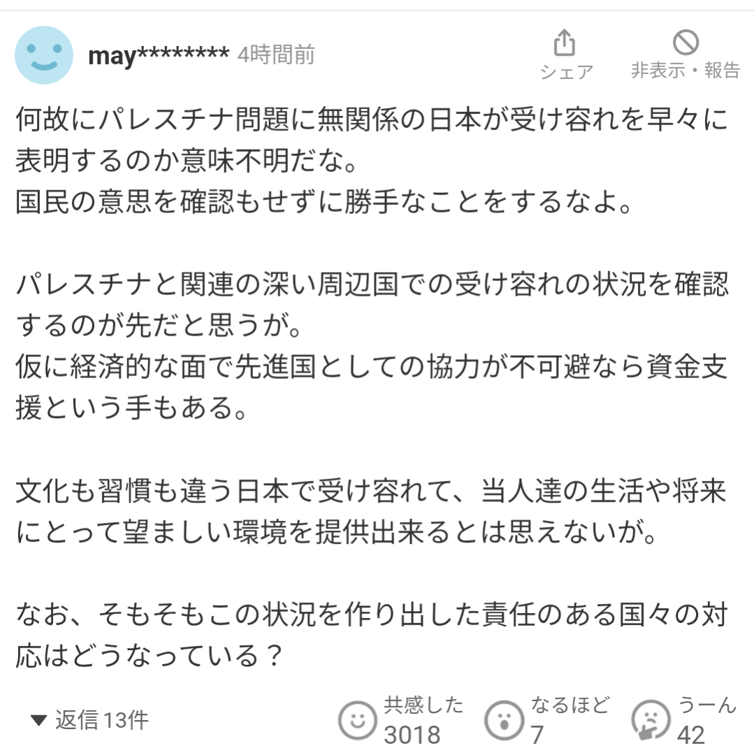 ケンモメンの家でパレスチナ難民受け入れるんだよな?