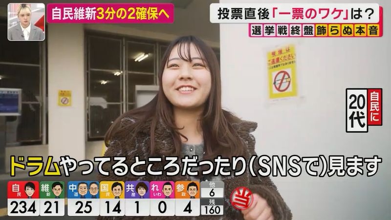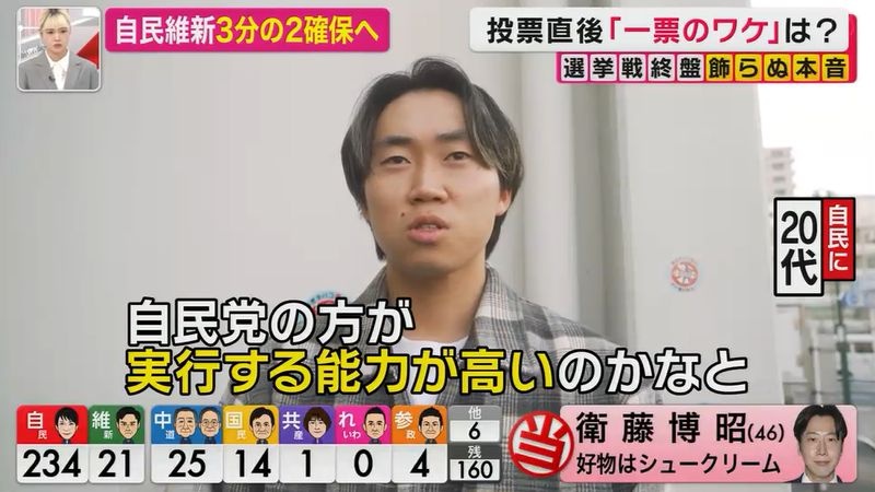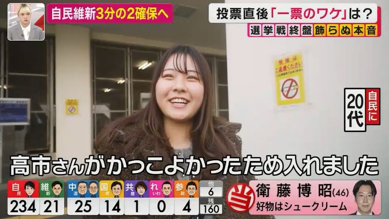 開票日に東浩紀の素人参加型ゲンロンライブで枝野支持の女性が、高市さんは頑張ってるから自民党に入れたとか言ってて引いた