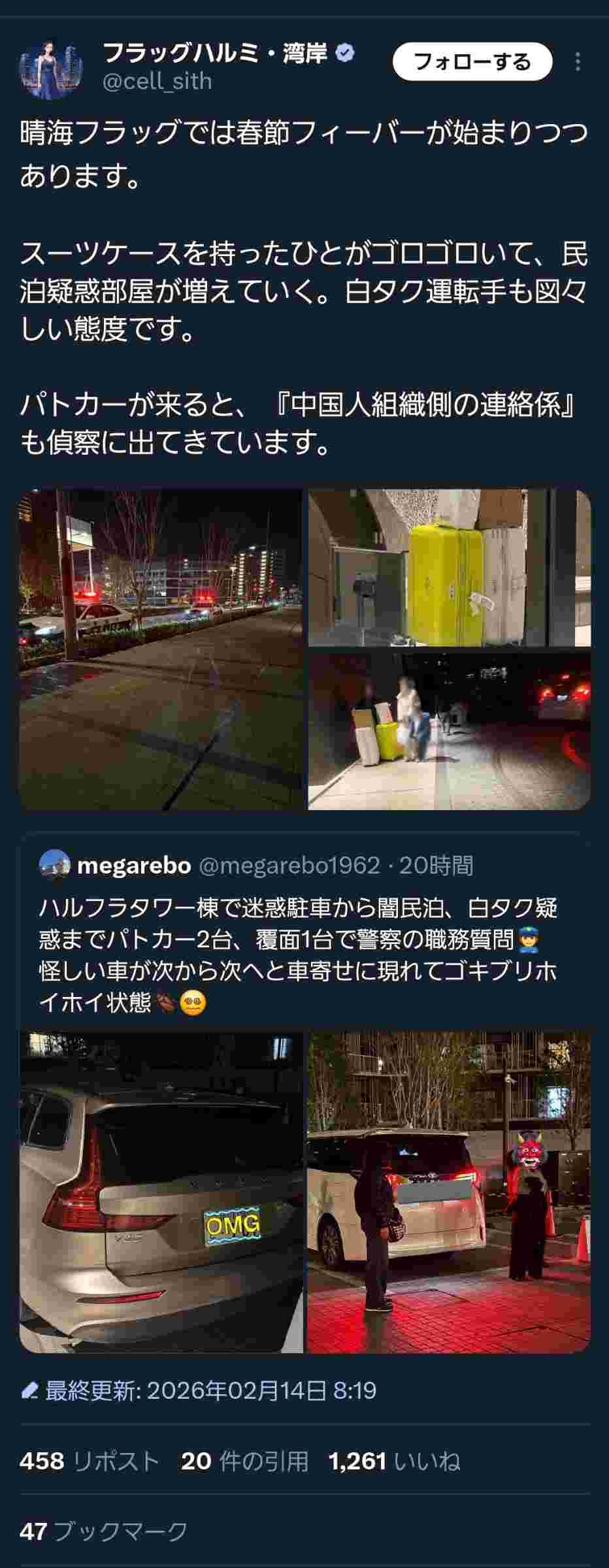 晴海フラッグ、春節で中国人の違法民泊&白タク祭りwww