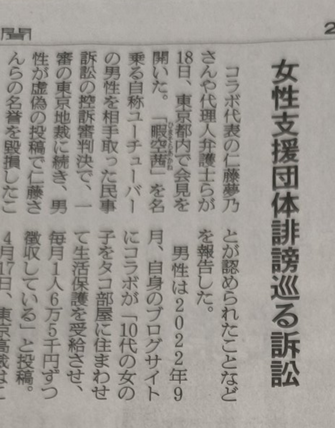 朝日新聞がコラボと暇空さんの件記事にしてたけど、普段新聞読んでる人でこの件ほとんど知らない人からしたら、一方的に暇空さんが悪者みたいに見えちゃうよ。