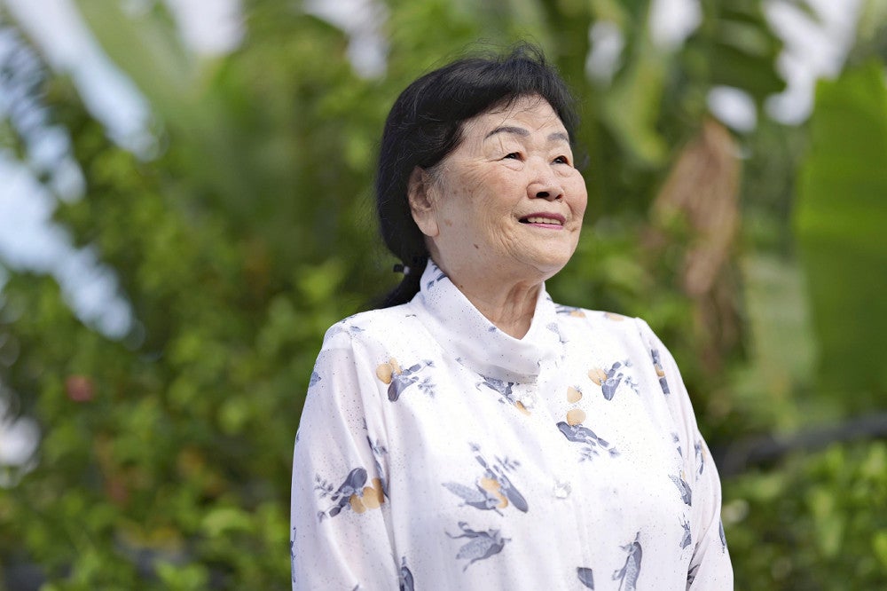 あれから80年。87歳となった比嘉富子さんは「私が今、生きているのは、あの老夫婦のおかげ」と穏やかな笑みを浮かべる。公民館で琉球舞踊や 三線 を楽しみ、夫の入院先を訪ねて2人で過ごす日々を送る。