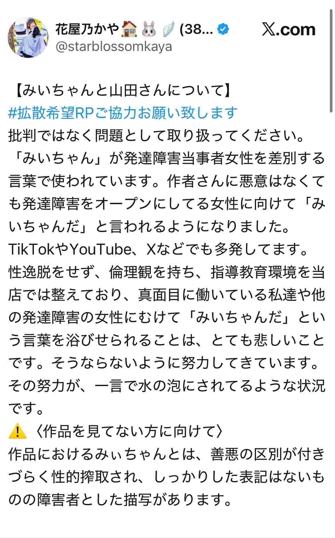 有名漫画家、みぃちゃん山田さん炎上問題に物申す「(障がい者の)描写に配慮する必要はない」