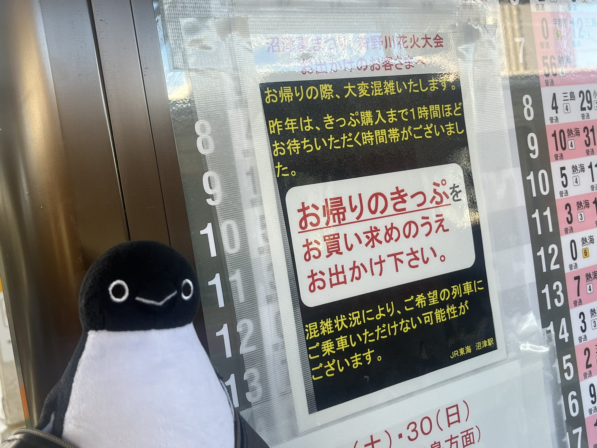 帰りもきっぷ買う人の長蛇の列ができるのが沼津