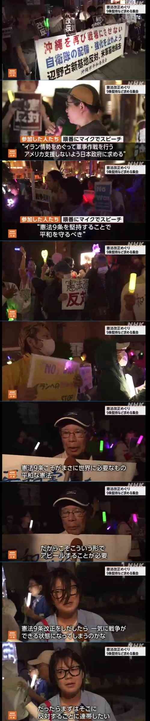 8日夜、憲法改正の反対などを訴える集会が各地で開かれました。