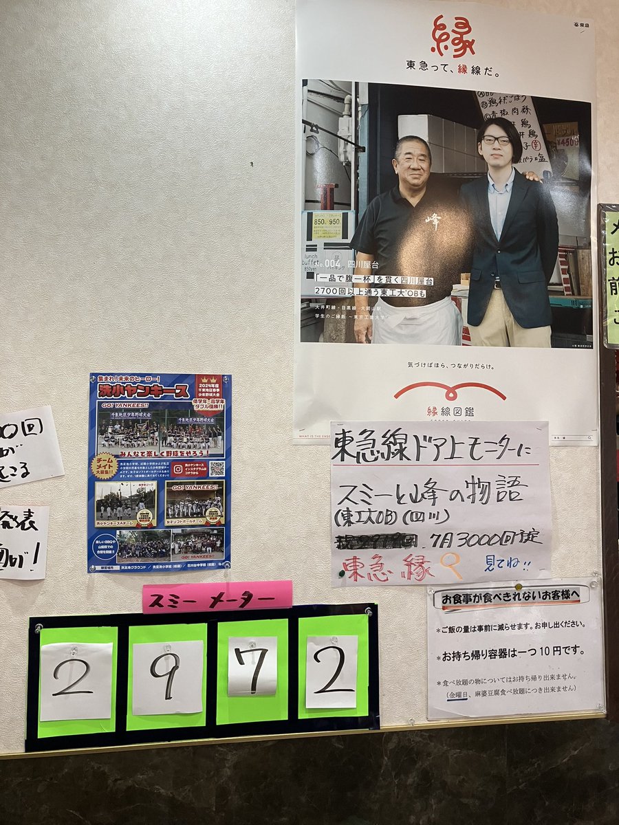 東京・大岡山の大衆中華料理店「四川屋台」常連客スミーさんが10年通い続けた結果、来店数カウンターが設置され本人がコメント