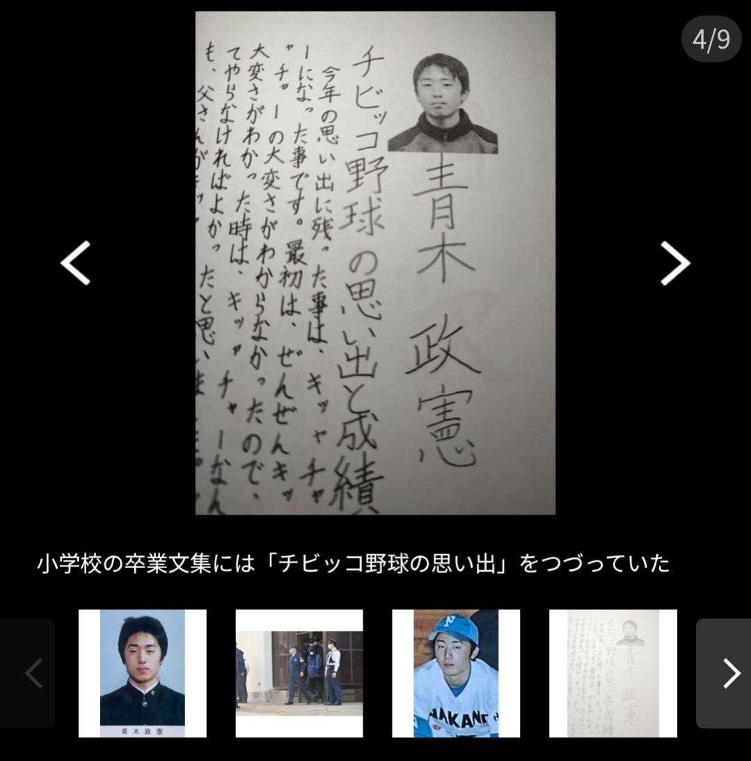 >小学校の卒業文集には「チビッコ野球の思い出」をつづっていた