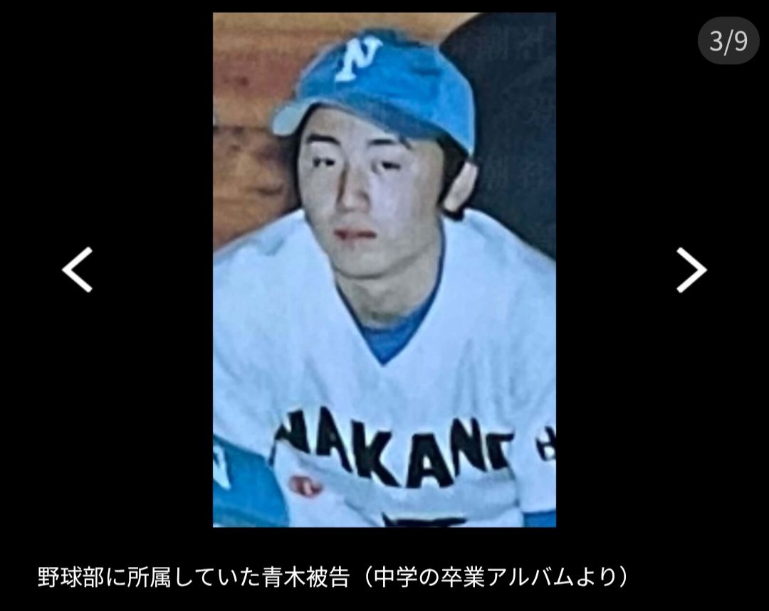 >野球部に所属していた青木被告(中学の卒業アルバムより)