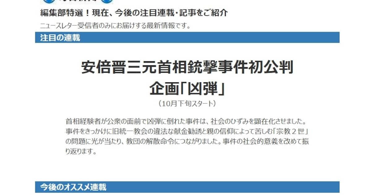 安倍晋三元首相銃撃事件で殺人罪などに問われた山上徹也被告の裁判員裁判の初公判が28日に奈良地裁で始まる。これに関し、毎日新聞社が同事件の「社会的意義を振り返る」などと、同事件に意義があったと思われるような表記をしたニュースレターを会員向けに送信していたことが物議をかもした。同社は「不適切な表現だった」と釈明し、当該部分を訂正したニュースレターを再送した。