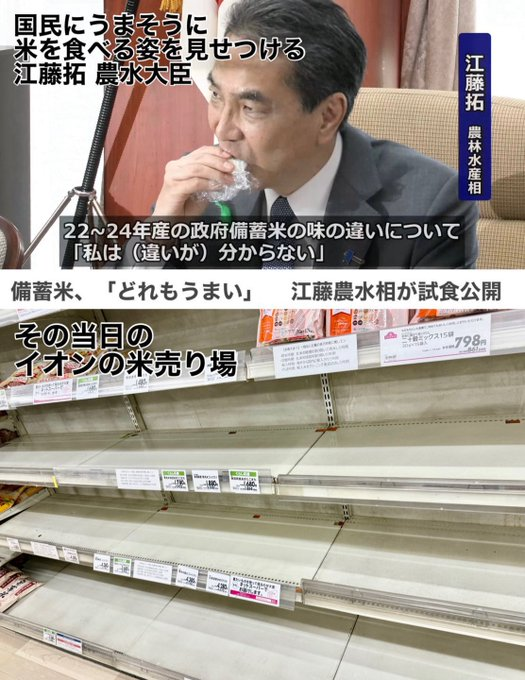 死にそうな庶民を横目に見ながらタダで食う米は美味いんやろな
