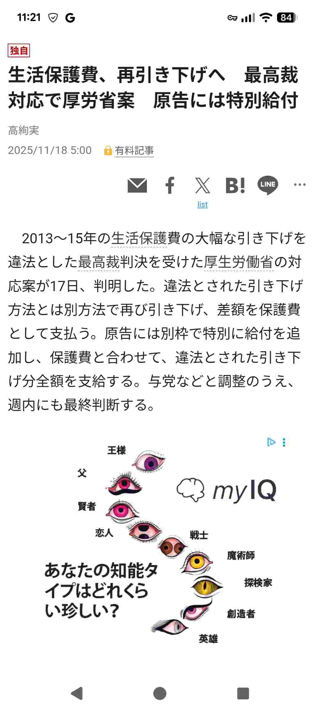 生活保護費、再引き下げへ 最高裁対応で厚労省案 原告には特別給付:朝日新聞 https://share.google/Z8jiOgC7BKWkdV4PA