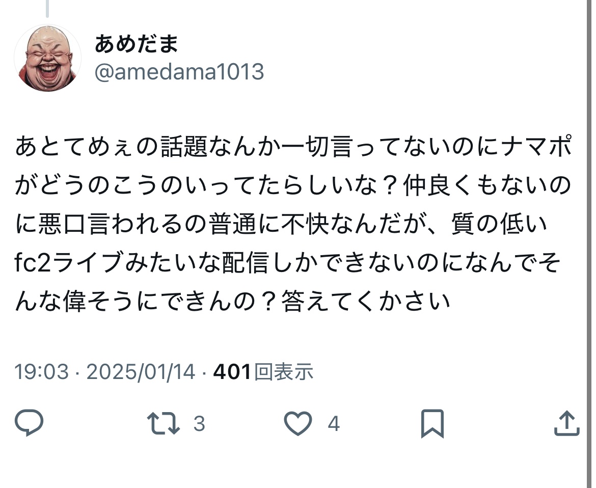 とっくに打ち切られてるけど通報で切られたのが悔しくて今でもナマポと強がってるんでしょうな