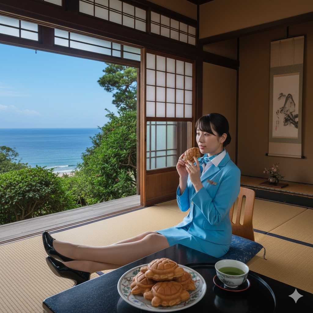 なんともかわいらしい亀の形の鯛焼きみたいなお菓子。トンビに盗まれないようにね