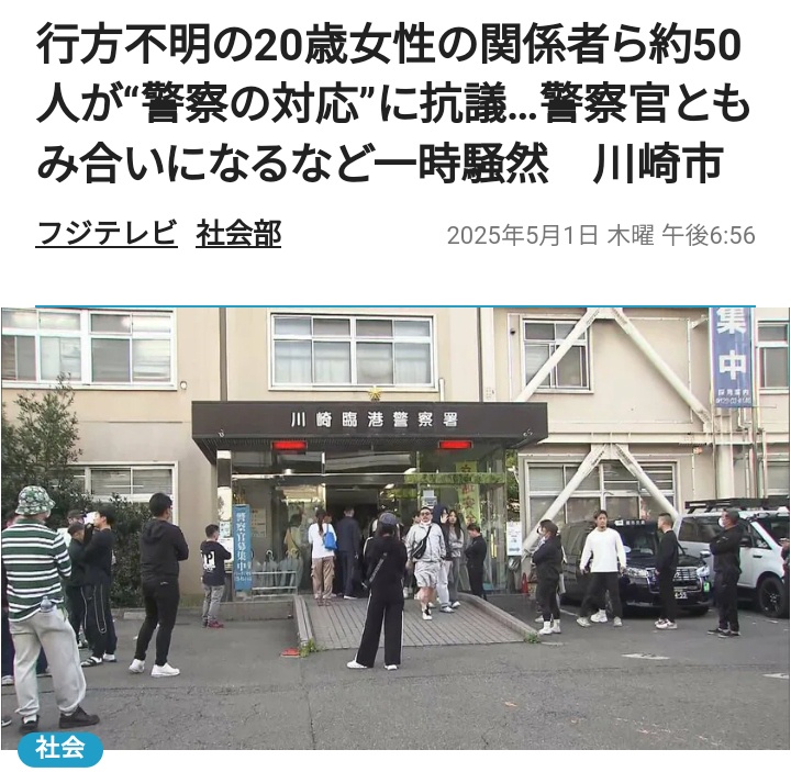 行方不明の20歳女性の関係者ら約50人が“警察の対応”に抗議…警察官ともみ合いになるなど一時騒然 川崎市(FNNプライムオンライン(フジテレビ系))