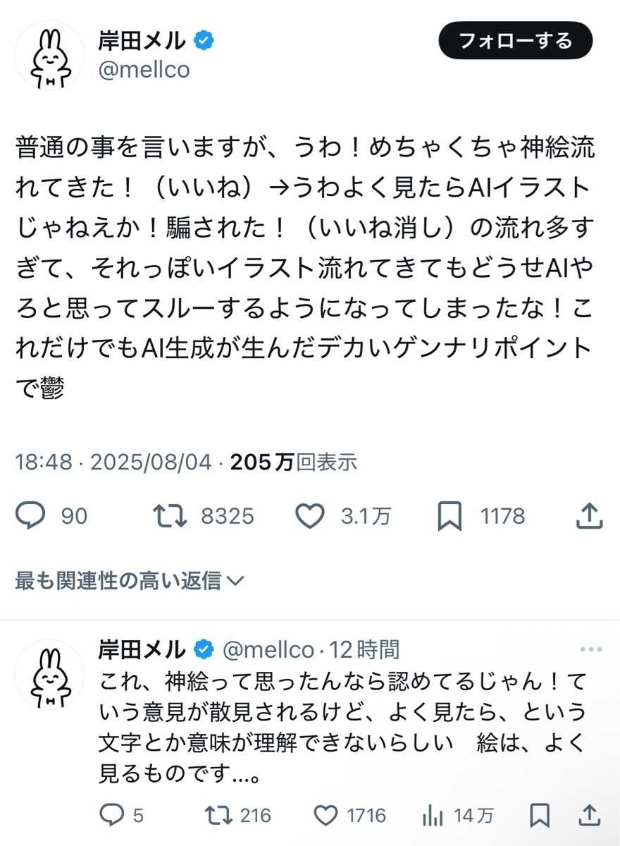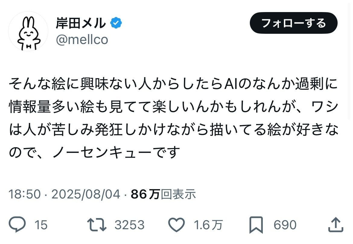 なお、ぱっと見だとAIと手描きの区別がつかない模様