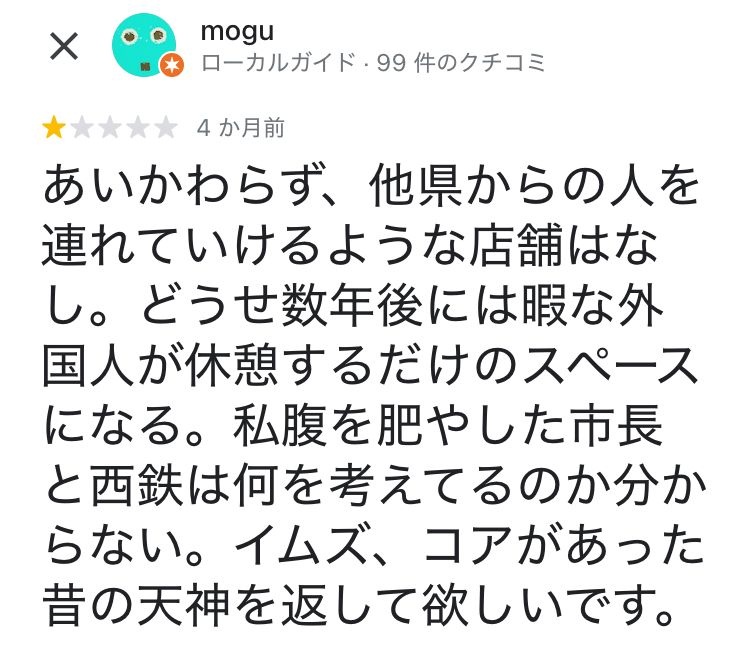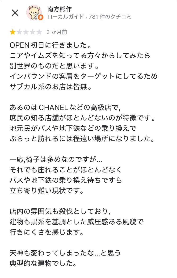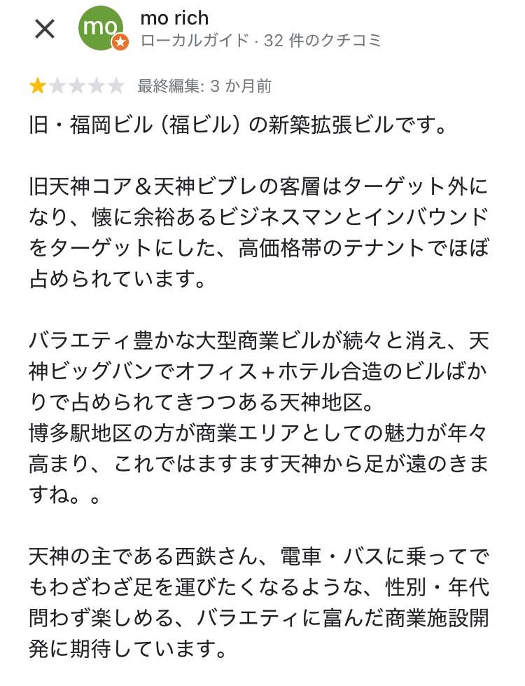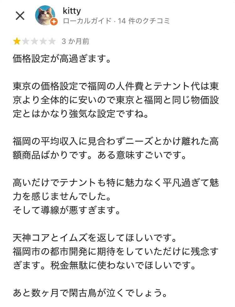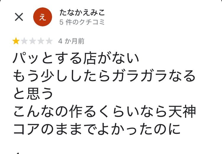 レビュー酷評「天神コアと天神ビブレを返して」